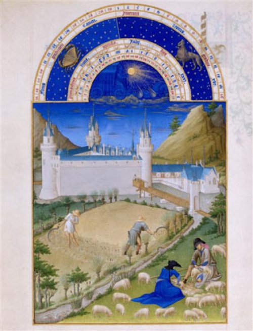 Le Moyen Age est la grande période de l’enluminure. Les manuscrits byzantins reprennent les codes de représentation développés dans l’art grec pour illustrer des textes religieux, c’est le cas du Psautier de Paris, orné au Xe siècle. En Occident, l’enluminure se développe d’abord au VIIe siècle en Irlande et en Angleterre. Les motifs forment des entrelacs géométriques inspirés par l’art celte. Cette production est associée à la création d’abbayes et de monastères qui possèdent des ateliers d’écriture, les scriptoria, où l’on fabrique les livres. La figuration se développe avec les manuscrits carolingiens puis romans, mais c’est surtout à l’époque gothique que l’enluminure prend son essor. L’espace, le modelé, deviennent de plus en plus naturalistes et les décors atteignent un degré de raffinement extrême. L’enluminure n’est plus réservée au domaine religieux et les manuscrits profanes se développent comme les Très riches heures du duc de Berry vers 1413-1416.