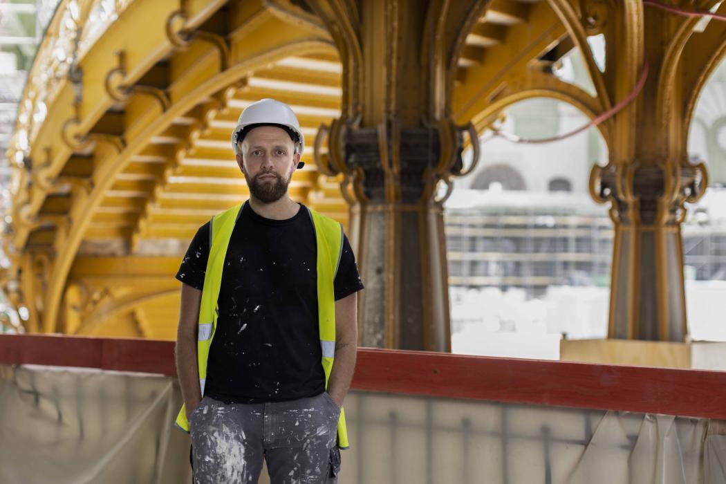 À propos du Grand Palais, les compagnons sont unanimes : on se sent « tout petit » dans cet « immense édifice », et c’est l’un des plus impressionnants chantiers sur lesquels ils ont pu travailler. Pour nombre d’entre eux, côtoyer autant de corps de métiers différents est une première. À la croisée de l’histoire et de la modernité, le travail au cœur de ce monument leur procure une grande fierté – en 2024, ils se sentiront presque chez eux !