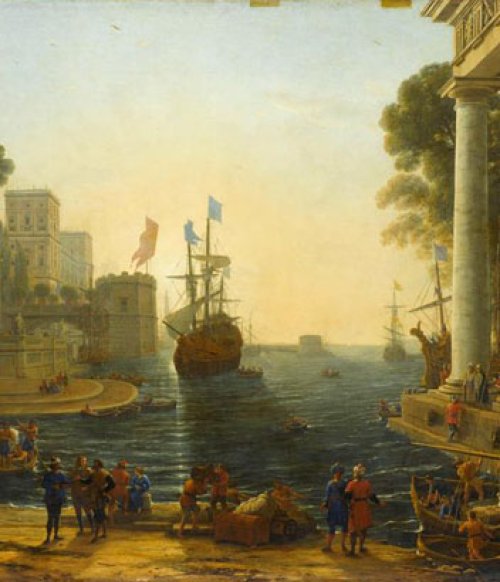 Cette vision idéale, arcadienne du monde avec un sentiment d’ordre et de paix, un ciel clément est la principale caractéristique de toutes les œuvres du Lorrain. Les héros y sont le haut ciel, la terre et la mer ; une ligne d’horizon très basse engendrant un effet de perspective accentué, toutes les lignes convergeant vers un centre unique.