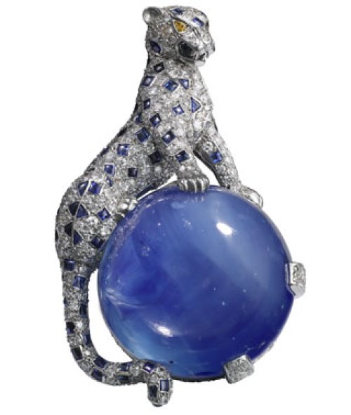 1949 - Le duc et la duchesse de Windsor achètent à Paris une broche motif « panthère » en platine sur un saphir cachemire cabochon de 152,35 carats ; elle sera rachetée pour la Collection Cartier en 1987.