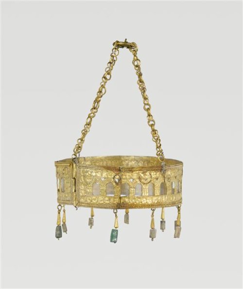 L'art wisigoth est celui d'un peuple germanique, les wisigoths ou "sages brillants", d'après la signification de leur nom, originaires de la région de la Mer noire. Ils migrèrent vers l'Ouest, vers la Grèce, puis vers l'Italie, le sud de la France, jusqu'en Espagne, entre le début du IIIe siècle et le début du 5e siècle. Alaric était l'un de leurs plus célèbres rois. Ils s'installèrent en Aquitaine puis en Espagne, en 414. Leur royaume s'étendait sur l'Aquitaine (jusqu'en 507), le Languedoc (la Septimanie), une partie de la Provence, l'Espagne, le Nord du Portugal et la Galice. Leur art s'est développé entre le 5e siècle et le 8e siècle, principalement en Espagne et au Portugal. Leur architecture est sombre, bâtie de pierres taillées assemblées à sec (sans mortier). Ils construisaient des églises aux plans en forme de croix ou basilical. Ils bâtissaient également des palais et des fortifications. Côté sculpture, on ne connait que celle qui décore les églises encore visibles de nos jours: chapiteaux, frises… Les artisans wisigoths développèrent un art de l'orfèvrerie: nous connaissons des couronnes, des fibules, des boucles de ceinture. Ils travaillaient les métaux précieux comme l'or. Ils les ajouraient et les décoraient de perles, de pierres précieuses et semi-précieuses, et de filigranes. Les motifs représentés étaient géométriques; comme en témoigne le trèsor de Guarrazar conservé au musée national du Moyen Âge-Thermes de Cluny, à Paris (ci-contre une des couronnes de ce trésor).