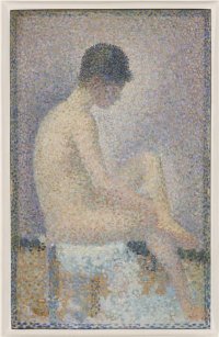 Seurat veut renouveller l'impressionnisme. Il veut apporter encore plus d'éclat à la couleur. Il étudie tous les écrits scientifiques sur la couleur et l'optique. Pour que les couleurs soient éclatantes, il ne faut pas les mélanger sur la palette mais les poser pures sur la toile. Les néo-impressionnistes ne vont utiliser que les couleurs du cercle chromatique. Seurat juxtapose le bleu et l'orange, opposés sur le cercle. En effet, le meilleur contraste est celui des couleurs complémentaires. Mises l'une à côté de l'autre, on ne voit qu'elles!