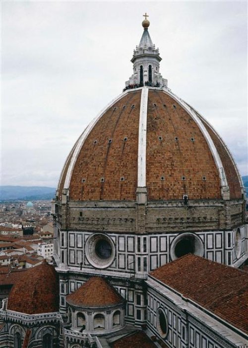 L’invention de la perspective est souvent attribuée à Brunelleschi. Il aurait peint les premiers tableaux représentant des bâtiments en perspective. Il va beaucoup influencer les peintres de la Renaissance. Après un voyage à Rome où il étudie les monuments antiques, il décide de se consacrer à l’architecture. En rupture avec l’art gothique, il cherche des volumes simples et s’inspire des formes de l’Antiquité : la coupole, l’arc… Florence lui commande la coupole de la cathédrale de Santa Maria del Fiore. La taille de la coupole est une prouesse technique.