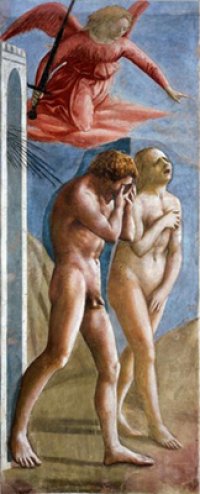 Masaccio, jeune peintre, applique les découvertes de Brunelleschi. Il peint de savantes perspectives qui creusent l’espace. Ses fresques placées dans les églises donnent une réelle impression de trompe-l'oeil. Il accorde beaucoup d’importance à la psychologie des personnages, tranchant avec le Moyen âge où l’on trouvait peu d’expression. Sur cette fresque de la Chapelle Brancacci, on peut ressentir la tristesse d'Adam et Ève chassés du Paradis. En peignant les sentiments, Masaccio rend ses personnages plus proches des fidèles.