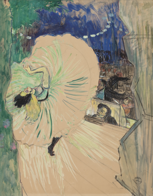 Aux Folies-Bergère, Loïe Fuller (1869-1928) déploie les larges voiles de sa robe, dessinant dans l’air d’incroyables tournoiements. C’est comme la flamme d’un feu qui danse sous ses yeux. Au cirque, Lautrec observe les corps contorsionnés des trapézistes et des funambules.