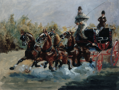 Élevé dans une famille où l’on s’adonne à l’équitation et à la chasse, Toulouse-Lautrec dessine dès l’enfance des chevaux. On sait son maître René Princeteau fort intéressé par les photographies de Muybridge décomposant le galop d’un cheval et l’on peut donc imaginer que son élève les a vues.